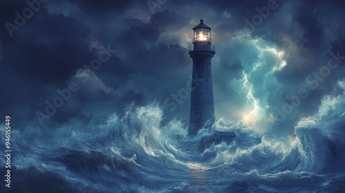 Lighthouse in the storm, anime style