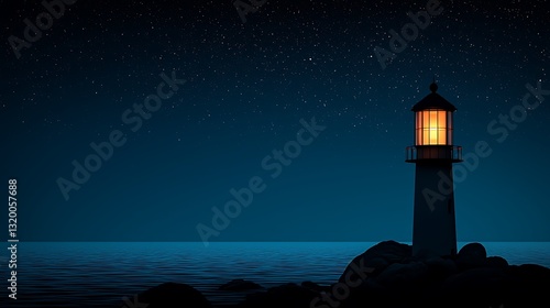 Lighthouse Night Scene Dark Blue Ocean Stars