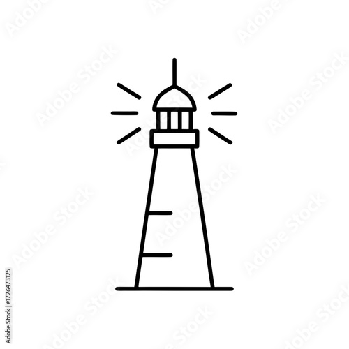 Lighthouse outline with radiating light icon on transparent background