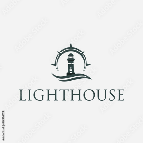Lighthouse Searchlight Beacon Tower Icon Island Beach logo design inspiration