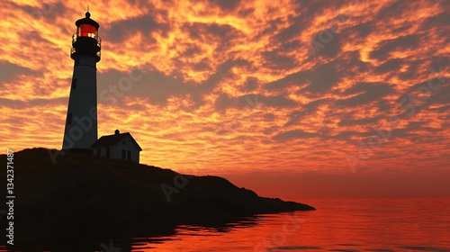 Lighthouse Sunset Seascape: A Beacon of Hope at Dusk