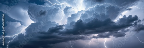 Lightning strikes through dark storm clouds