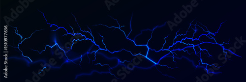 Lightning. Thunder storm realistic lightning. Bright light effects. Blue lightning. Vector illustration