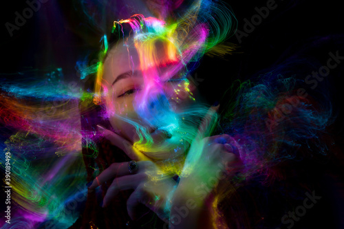 lightpainting portrait, new art direction, , light drawing at long exposure