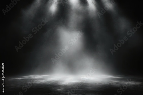 Lights shine on stage with clouds of smoke. Captivating abstract stage design