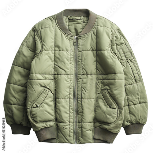 Lightweight Quilted Jacket in Pastel Green Isolated on Transparent Background