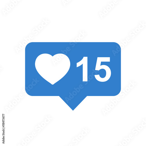 Like, comment, follower icon. Blue flat vector illustration with heart on white background.