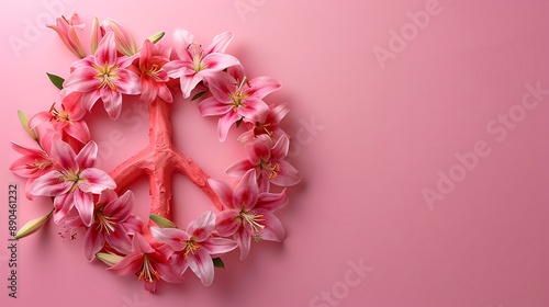 Lilies blooming in a peace sign shape, providing an elegant floral backdrop with space for text insertion, perfect for serene peace day scenes and customizable designs