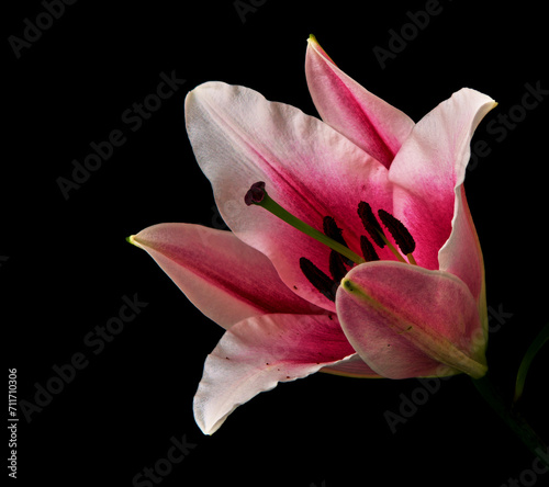 lily flowers grow on a black background