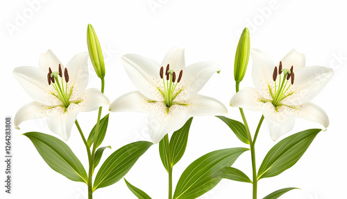 Lily flowers on white background for presentations and spring themes generative AI