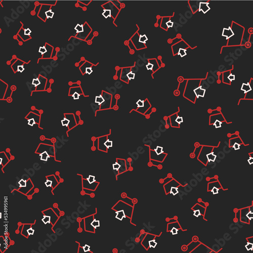 Line Add to Shopping cart icon isolated seamless pattern on black background. Online buying concept. Delivery service sign. Supermarket basket symbol. Vector