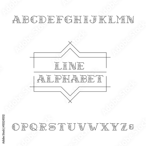 Line Alphabet Vector Font. Mono line type letters. Decorative outline typeface for labels, headlines, posters etc.