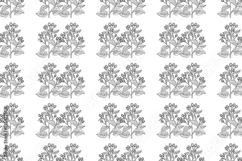Line art botanical seamless floral pattern with wildflowers vector illustration.Black and white outline repeating plant in white background. Graphic design for Fashion Cover Textile Coloring Page Card