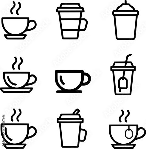 Line Art Coffee And Tea Icons Collection For Cafe Menu Or Website Graphics