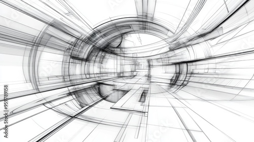 Line art depiction of a three dimensional abstract architectural design