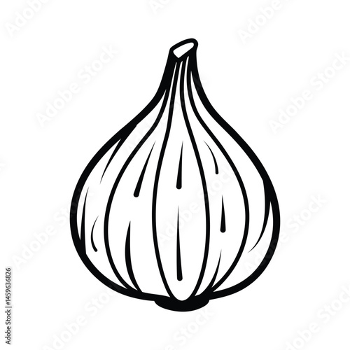 Line Art Garlic Vector, Garlic Bulb and Cloves Vector, Detailed Garlic Illustration