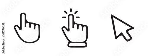 Line Art Hand Cursor Touch Icons for Digital Interfaces