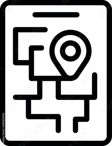 Line art icon of a gps navigation system showing the location on a city map with roads and buildings