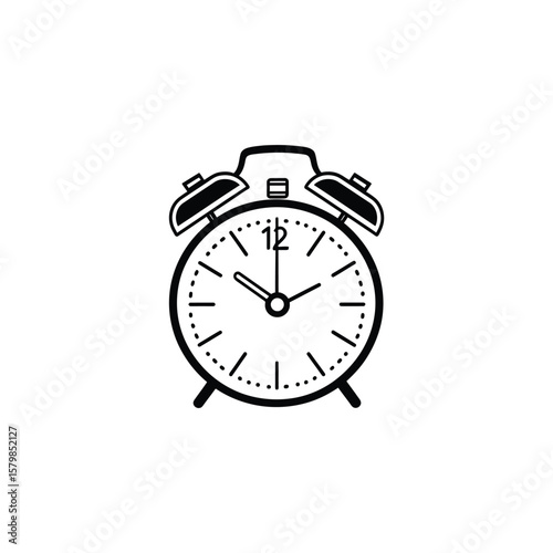 Line Art Illustration Classic Alarm Clock Showing Ten O'Clock and Ten Minutes, Black and White
