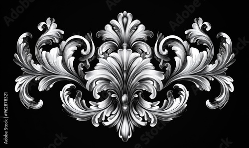 Line art illustration of a filigree ornament in a baroque style perfect for wedding decorations greeting cards and laser cutting projects