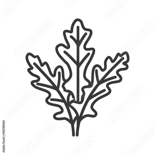 Line Art Illustration of a Sprig of Oak Leaves