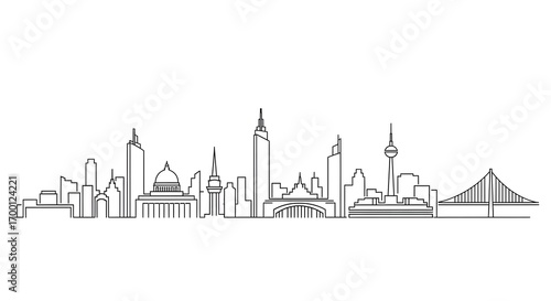 Line art illustration of Kuala Lumpur skyline.