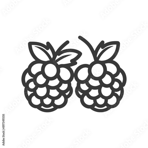Line Art Illustration of Two Raspberries with Stems and Leaves