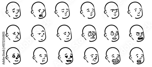Line Art Male Avatars with Bald Heads and Mustaches – Vector Pack