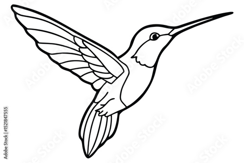 Line Art of a Hummingbird in Flight Displaying Feather Details and Long Beak