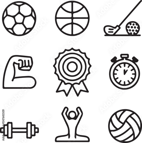 Line Art of Fitness and Sports Symbols in Circular Composition