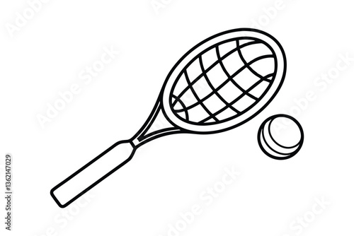Line art vector style illustration of a tennis racket with a tennis ball.eps