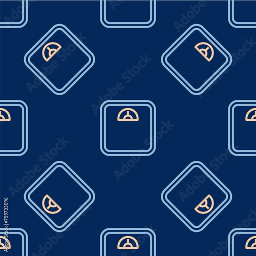Line Bathroom scales icon isolated seamless pattern on blue background. Weight measure Equipment. Weight Scale fitness sport concept. Vector