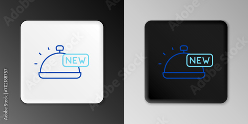 Line Covered with a tray of food icon isolated on grey background. Tray and lid sign. Restaurant cloche with lid. Colorful outline concept. Vector
