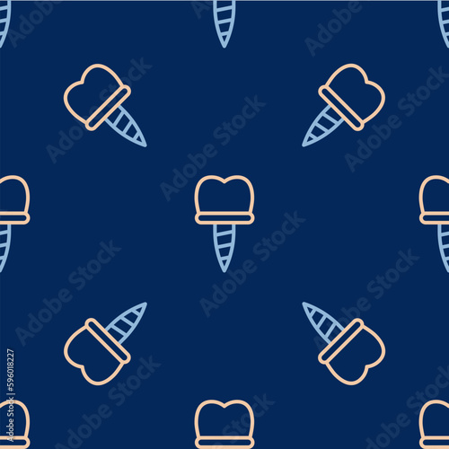Line Dental implant icon isolated seamless pattern on blue background. Vector