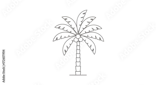 Line drawing of a palm tree with coconuts, showing the trunk and leaves in detail.