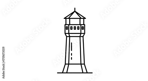 Line drawing of a water tower structure against a white background.