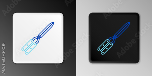 Line Gardening handmade scissors for trimming icon isolated on grey background. Pruning shears with wooden handles. Colorful outline concept. Vector