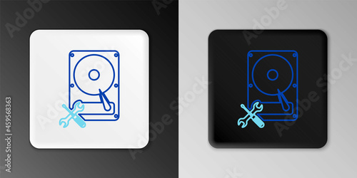 Line Hard disk drive with screwdriver and wrench icon isolated on grey background. Adjusting, service, setting, maintenance, repair, fixing. Colorful outline concept. Vector