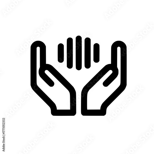 Line Icon Above Open Hands Representing Support Protection Growth and Data Visualization Concept