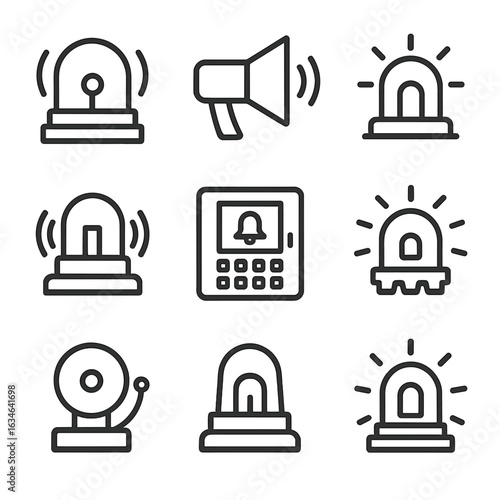Line industrial alarm icons contour set icon outline minimal symbol collection vector