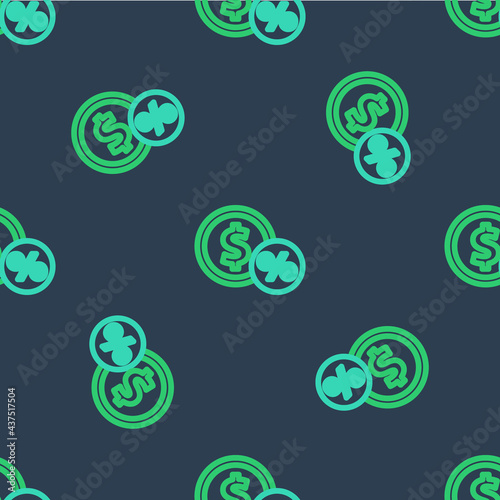 Line Money coin with percent icon isolated seamless pattern on blue background. Cash Banking currency sign. Vector