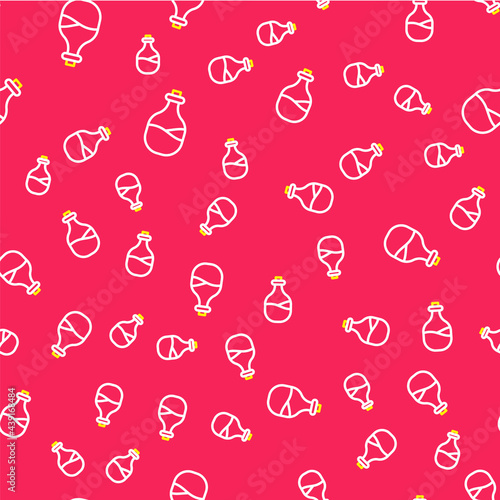 Line Old bottle of wine icon isolated seamless pattern on red background. Vector