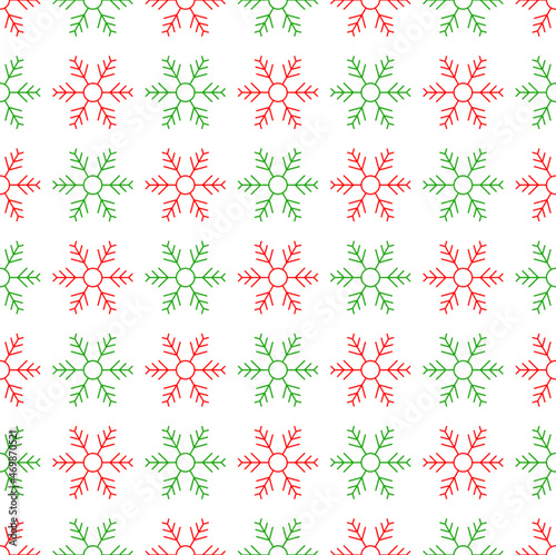 Line pine leaves red and green color on white paper Pattern for background copy write postcard Christmas day, greeting card, textile Fabric