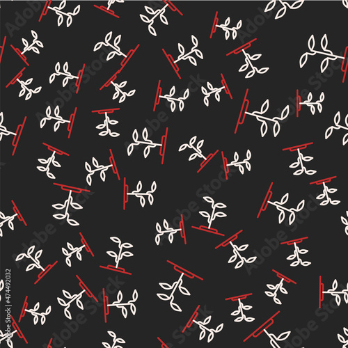 Line Sprout icon isolated seamless pattern on black background. Seed and seedling. Leaves sign. Leaf nature. Vector