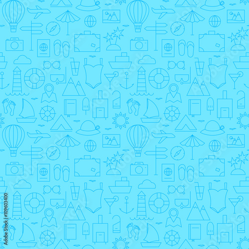 Line Summer Travel and Resort Blue Seamless Pattern