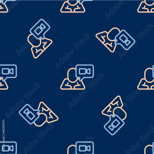 Line Video chat conference icon isolated seamless pattern on blue background. Online meeting work form home. Remote project management. Vector