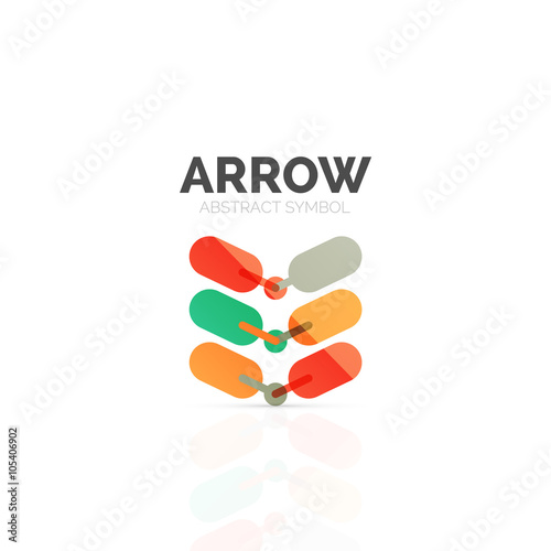 Linear arrow abstract logo, connected multicolored segments of lines in directional pointer figure