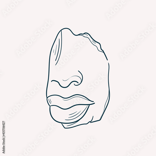Linear drawings of heads of antique statues of the goddess and mythical god in the engraving style. Creative minimal linear woman vector with growing branch from her head.