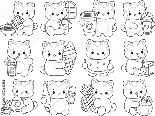 Lineart of a bunch of cute cat with various activities. Outline ofkKawaii animal kitty for scrapbook and sticker.