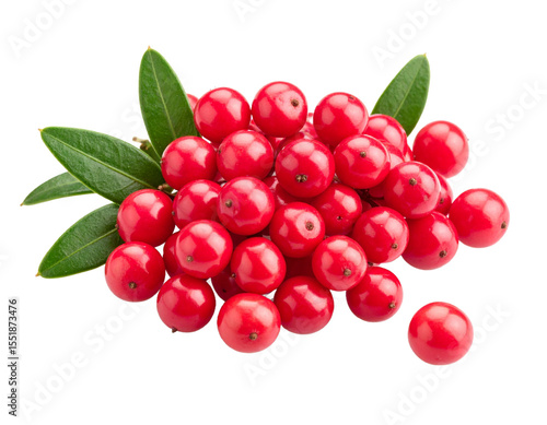 Lingonberry cluster with vibrant red berries and green leaves on transparent background